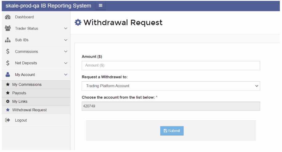 - ・Masuk ke My Account >> Halaman Permintaan Penarikan