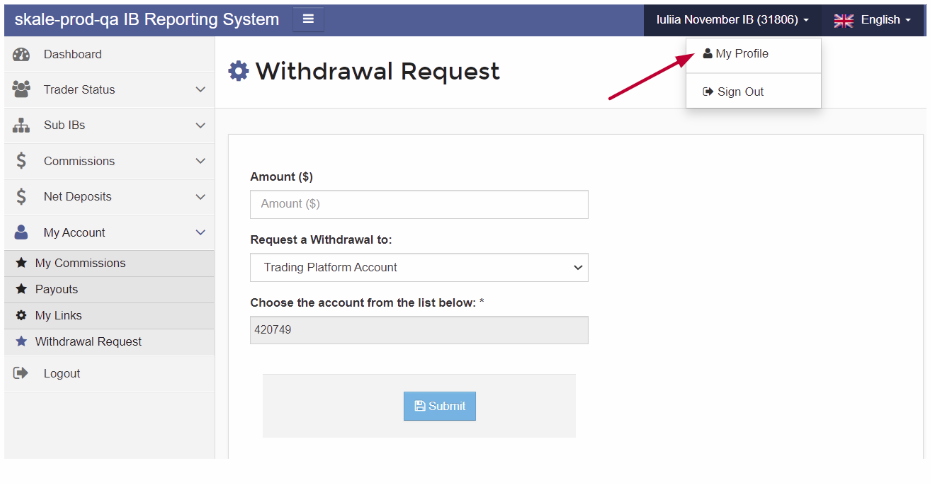 - 1. Klik pada nama Introducing Broker dan pilih ‘My Profile’