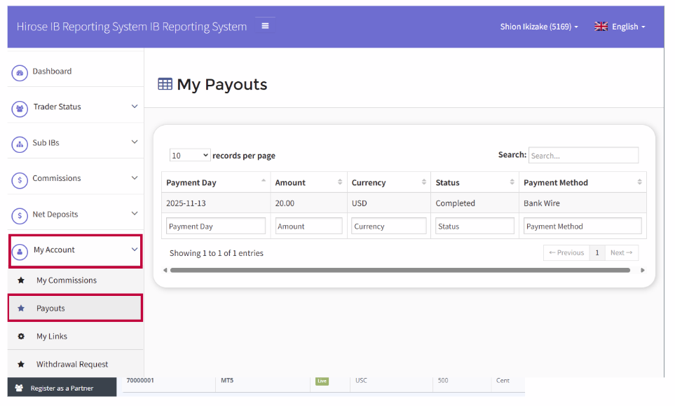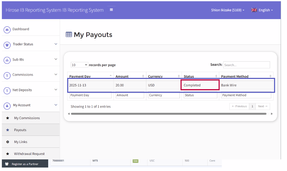 Setelah Anda mengirimkan permintaan penarikan, Anda dapat memeriksa statusnya setelah diproses oleh Hirose.
