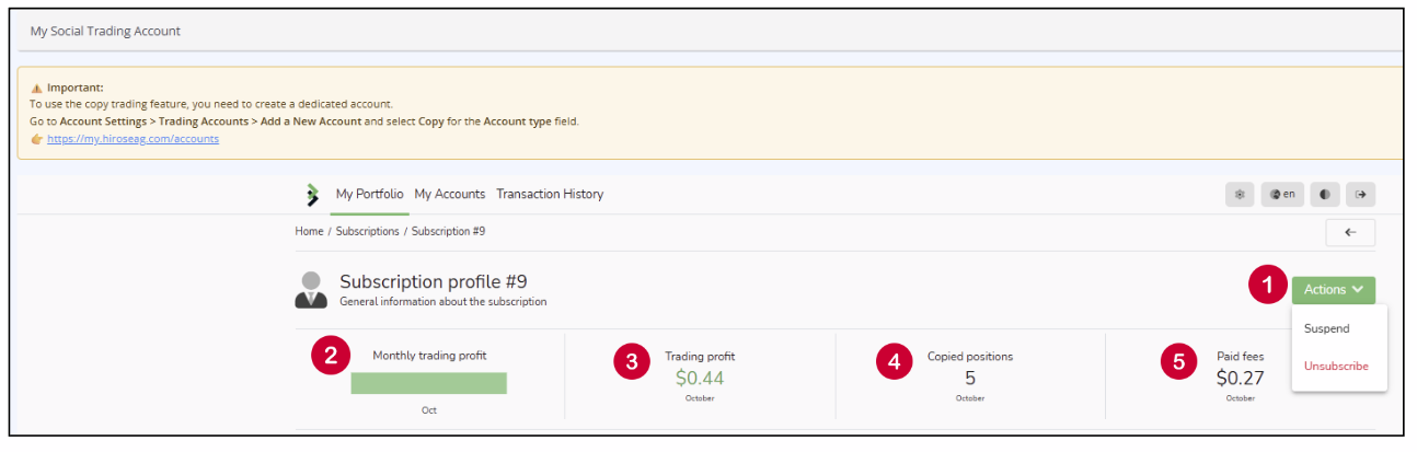 1 Actions You can Suspend or Unsubscribe your Follower Account by clicking the button from the drop-down menu.