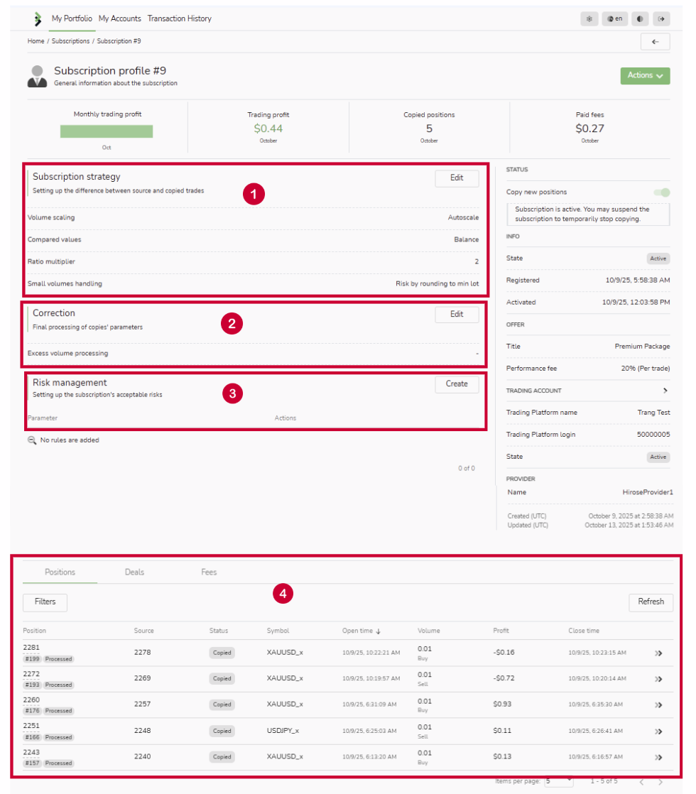 4 Copied positions The number of trades automatically copied from the provider during the month.