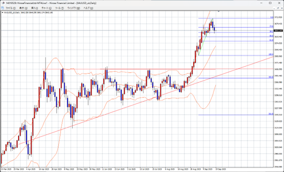 Tại cuộc họp Federal Open Market Committee (FOMC), Mỹ đã thể hiện thái độ thận trọng với việc cắt giảm lãi suất. Vì vậy, lãi suất dài hạn của Mỹ đã tăng. Hôm qua, lãi suất tiếp tục tăng. Sau đó, tại New York, số đơn xin trợ cấp thất nghiệp và số người tiếp tục nhận trợ cấp thấp hơn dự đoán, khiến lãi suất tăng mạnh hơn nữa. Vì vàng không mang lại lãi suất, áp lực bán vàng tăng lên. Hiện tại, vàng đã dừng giảm quanh mức 3630, tương ứng với mức thoái lui 38,2%. Tuy nhiên, do vàng vừa đạt mức cao kỷ lục và cuối tuần đang đến gần, khả năng giá vàng tiếp tục giảm là khá lớn.